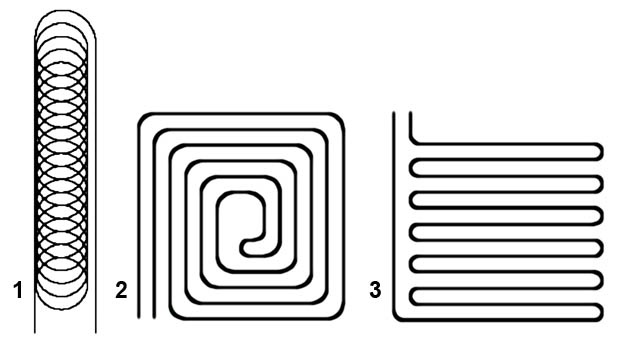 - Meandrové uloženie potrubia ideálne rozloží čerpania energie. Výhoda – z tepelného čerpadla ide chladnejšia kvapalina a po prejdení meandrom sa do tepelného čerpadla dostáva najteplejšia kvapalina.
